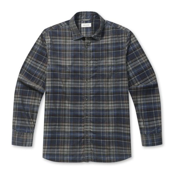 - 부드러운 터치감이 특징인 체크 패턴의 코듀로이 셔츠.