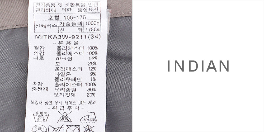 인디안INDIAN 니트에리 덕다운 사파리_MITKA3W9211