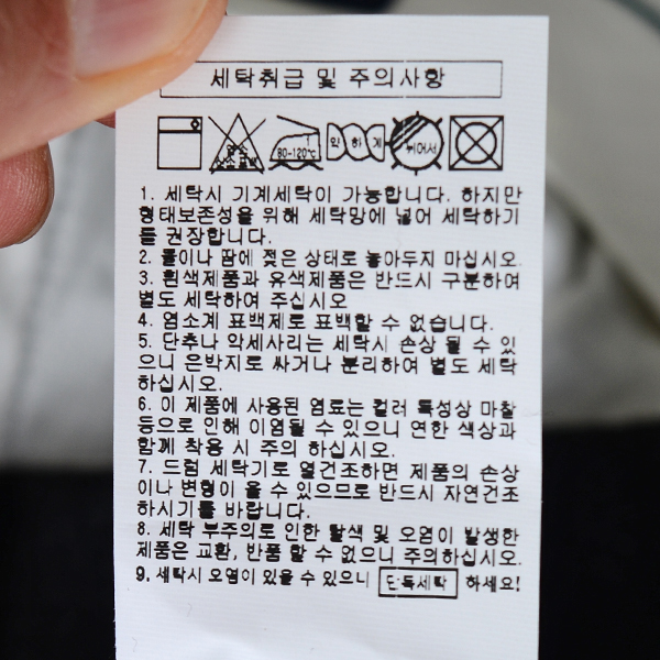 세탁방법 및 취급시 주의사항 : 손세탁-단독세탁