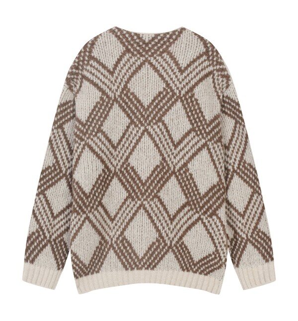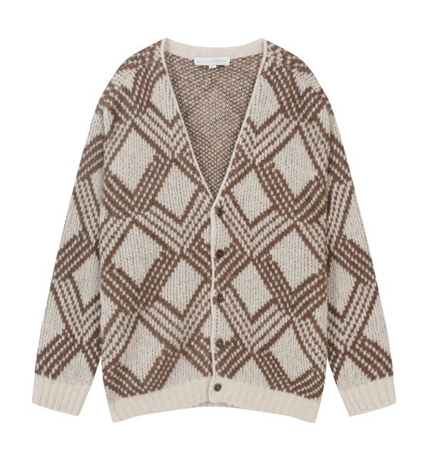 지이크STEIN GARTEN 울 알파카 아가일 패턴 루즈핏 가디건 베이지프린트 (P