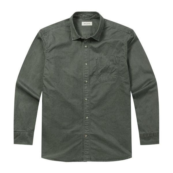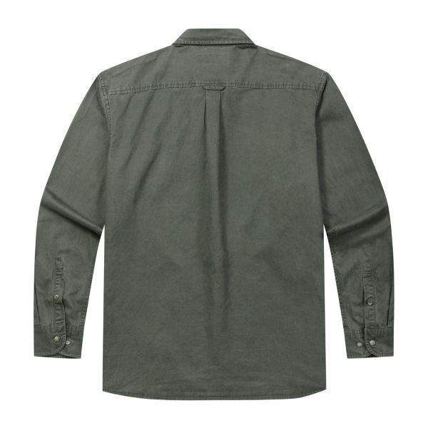 상품 특징 - 캐주얼하게 착용할 수 있는 코튼 소재의 가먼트워싱 캐주얼셔츠. - 카치온 염료를 사용하여 워싱했을때 내추럴하게 페이드 아웃된 효과가 특징. 디자인 디테일 - 등판에 여유 있는 등주름을 추가하여 착용감 및 활동성 개선. - 등판에 별도 행거 루프 디테일을 추가하여 착용감 및 활동성 개선. - 옆구리 부분 포인트 라벨 사용으로 장식적인 효과를 더함. - 앞중심 하단 단추 및 소매 단추는 레드 포인트를 주어 시각적 디테일 추가.