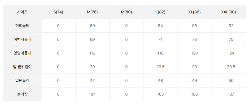 | 치수 | 78(29~30),82(31~32),86(33~34),90(35~36) |