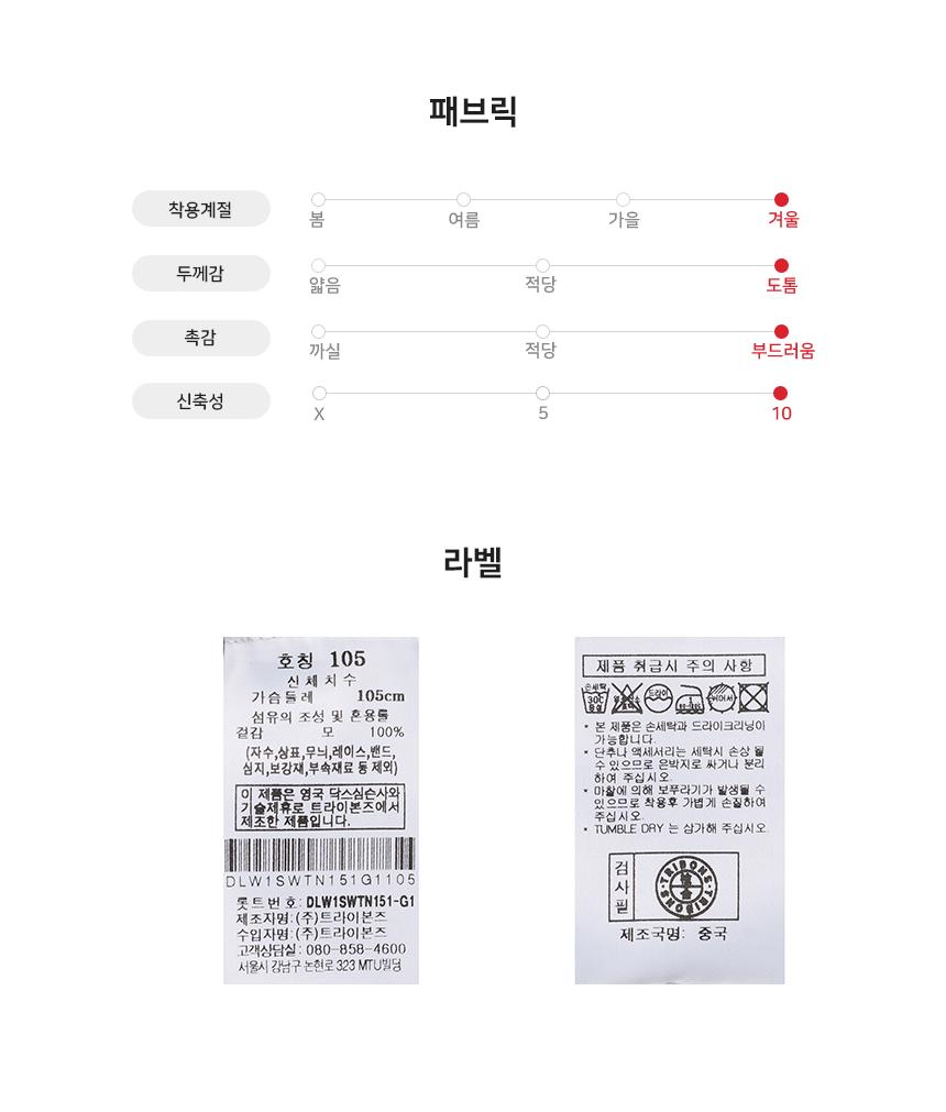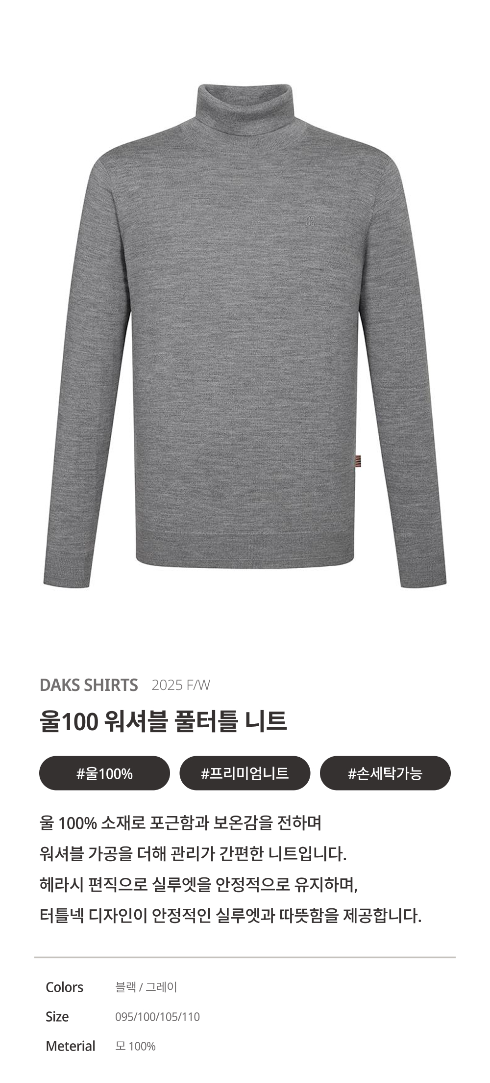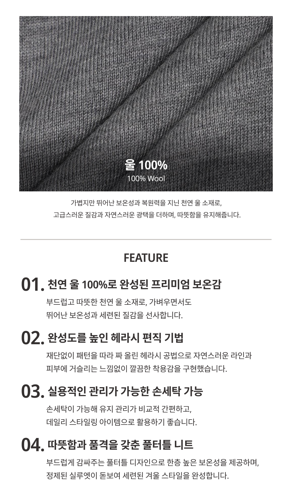 (롯데백화점)울100 워셔블 풀터틀 풀오버 니트 양말증정+선물포장LW151G1