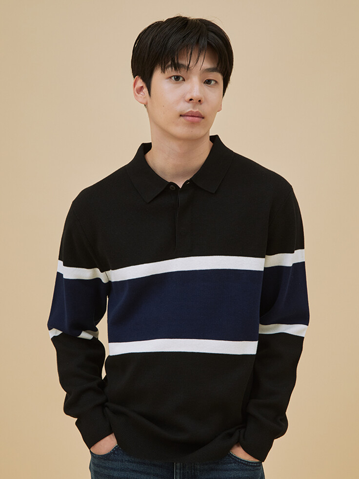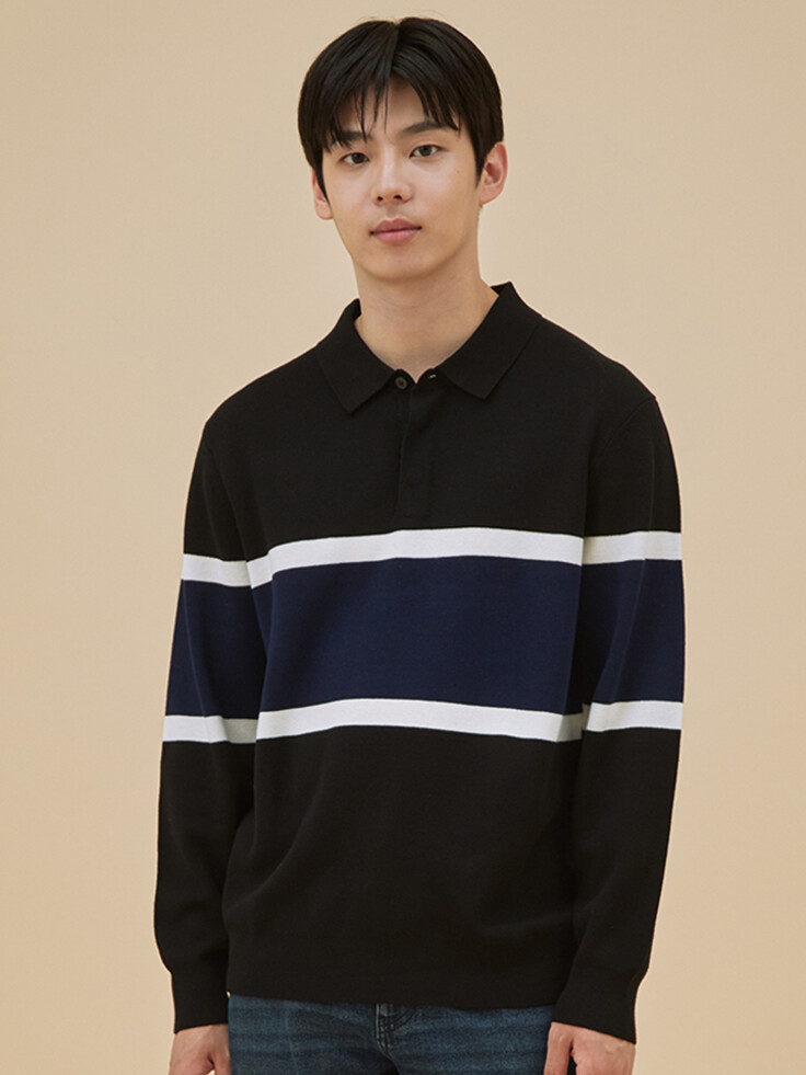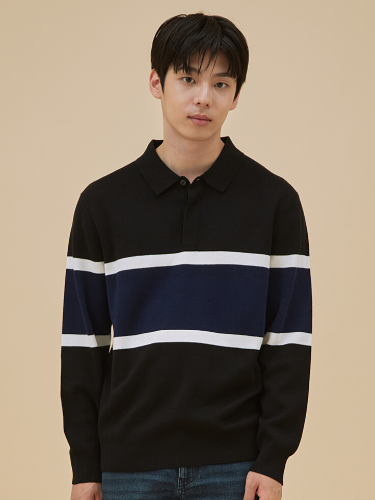 남성 하프밀란 블록 카라 스웨터_PHE4ET1040
