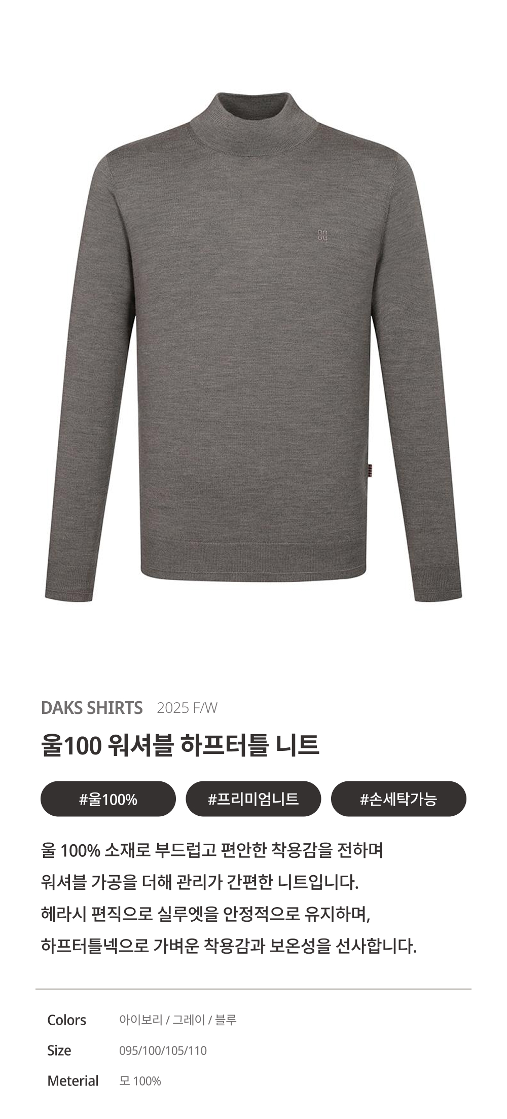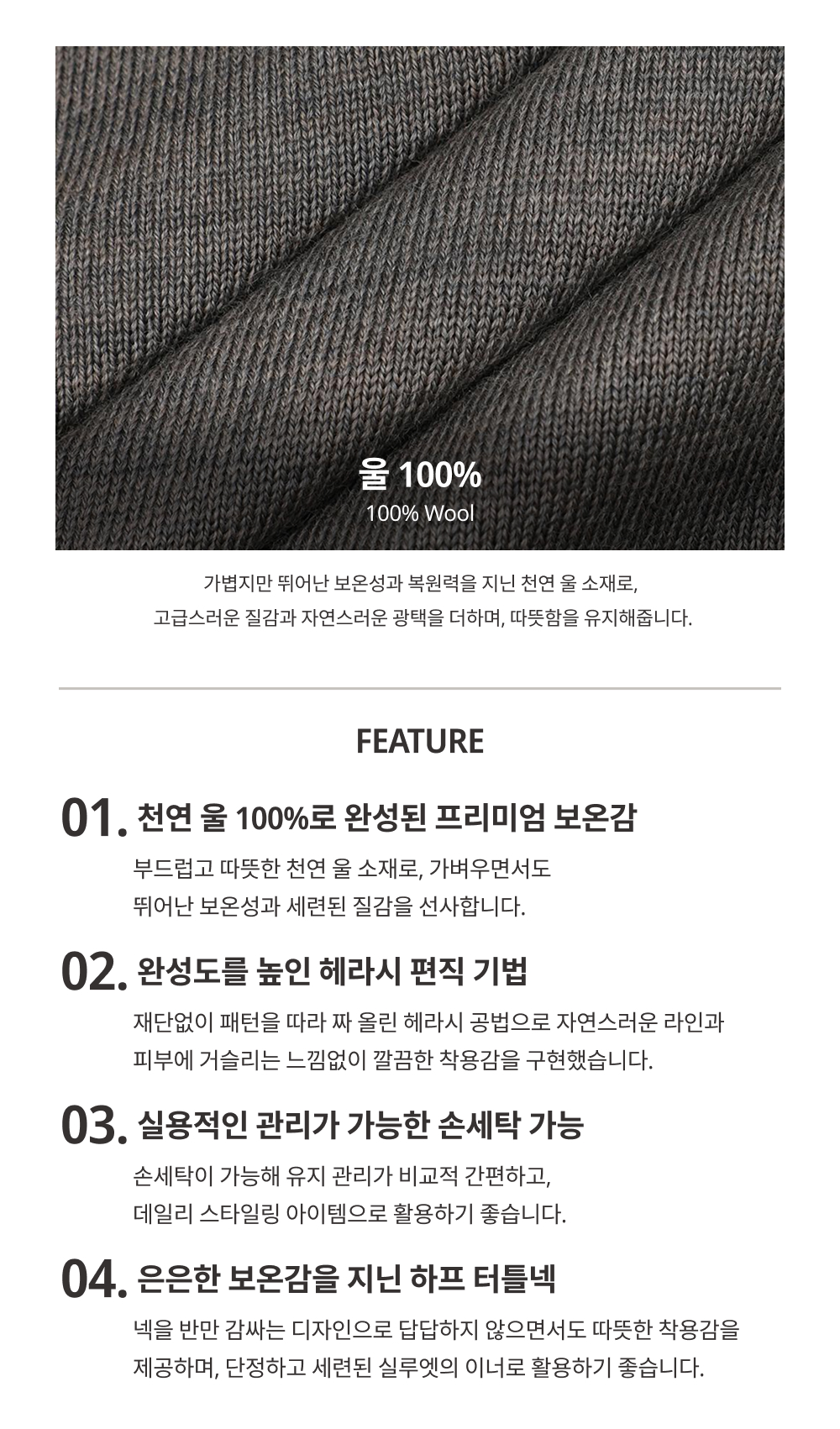(롯데백화점)울100 워셔블 하프터틀 풀오버 니트 양말증정+선물포장LW150I1