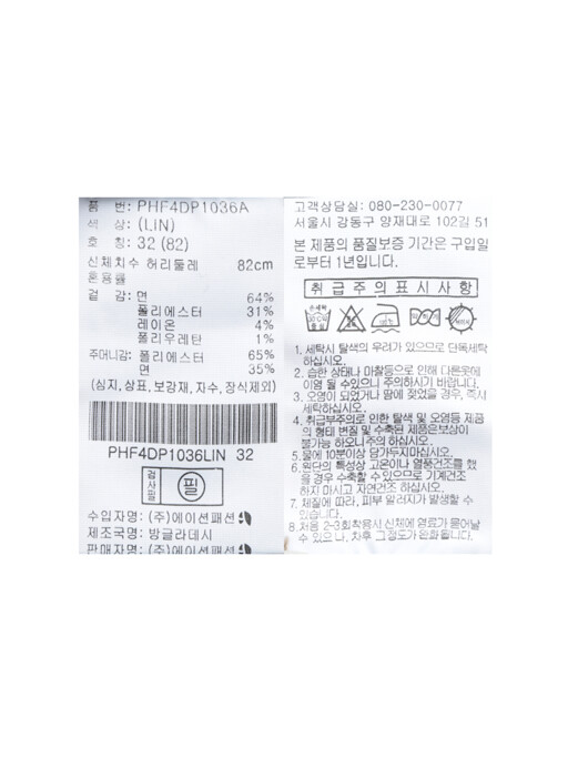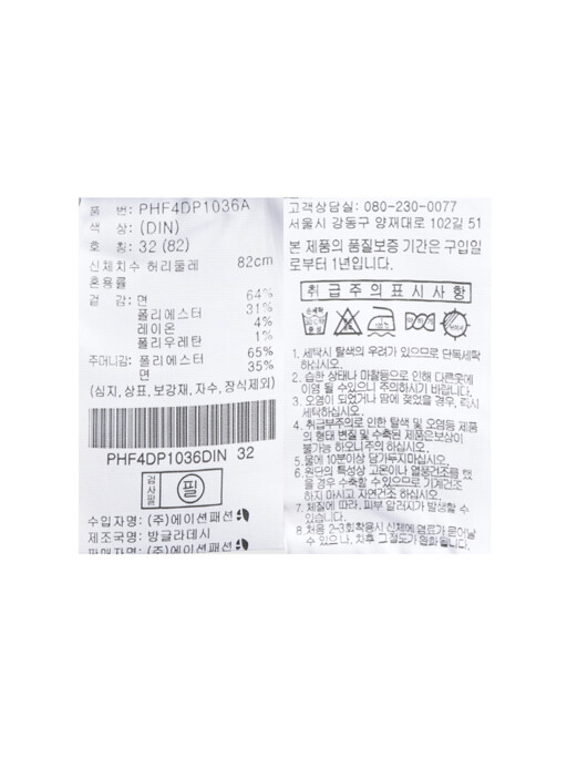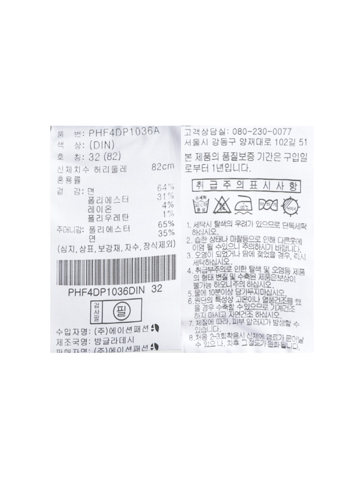 밑단둘레 | 32.8 | 33.5 | 34.2 | 35 | 36.5 | 38 |