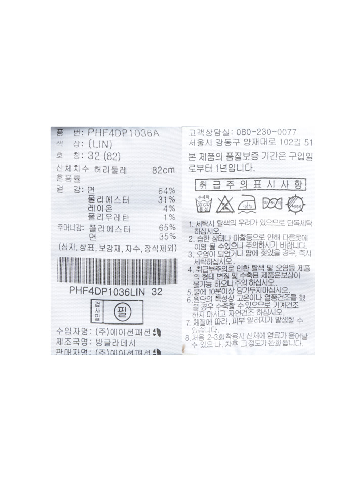 앞 밑위길이 | 25.5 | 26 | 26.5 | 27 | 28 | 29 |
