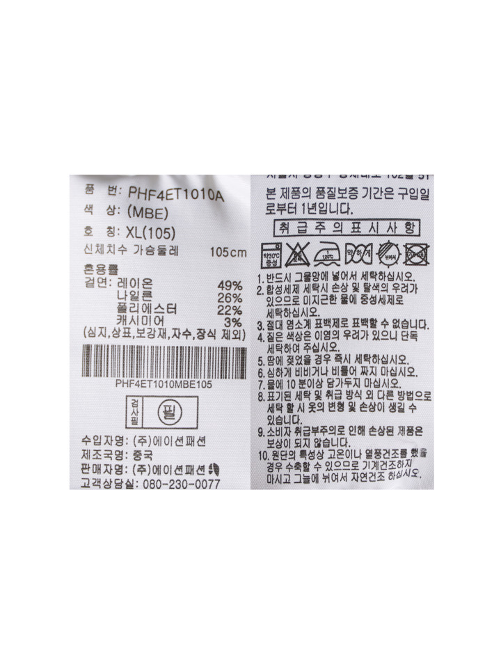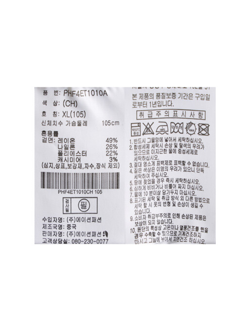 사이즈 | M(95) | L(100) | XL(105) | XXL(110) |