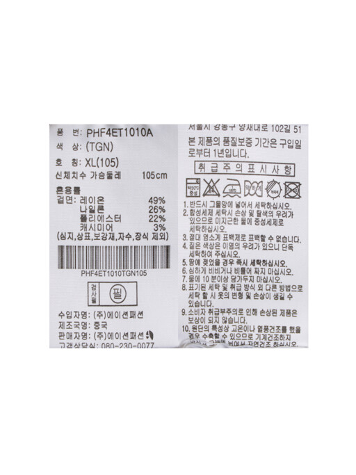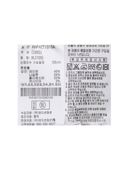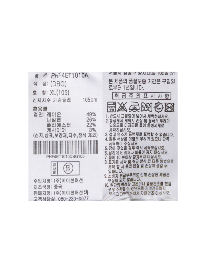 가슴둘레 | 101 | 106 | 111 | 116 |
