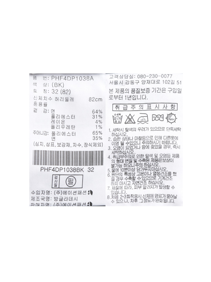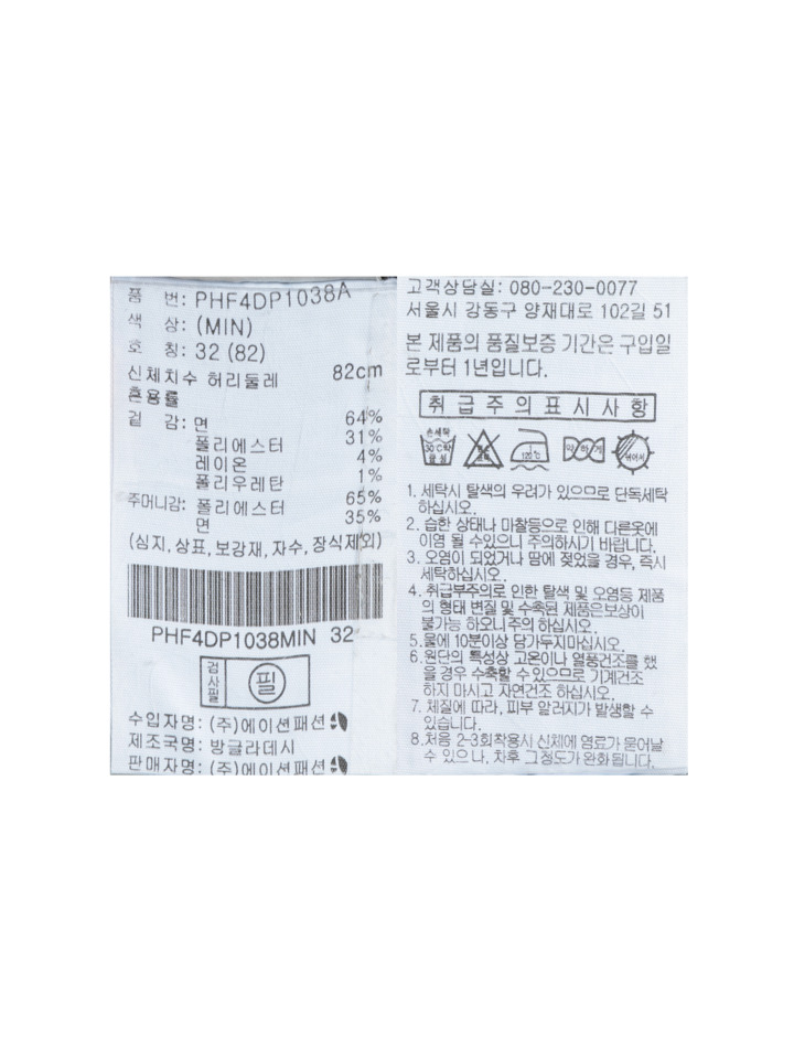 앞 밑위길이 | 27 | 27.5 | 28 | 28.5 | 29.5 | 30.5 |