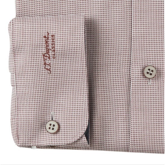 구김이 적고 터치감이 소프트한 유색 도비 원단입니다.  밴드안 커프스안 솔리드 배색 과 커프스 풀로고 사양의 비지니스 셔츠입니다.