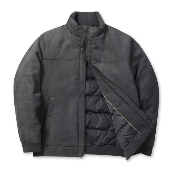 상품 특징- 인조 스웨이드 소재를 적용한 심플한 외관의 겨울 다운 점퍼.