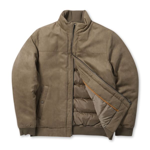상품 특징- 인조 스웨이드 소재를 적용한 심플한 외관의 겨울 다운 점퍼.