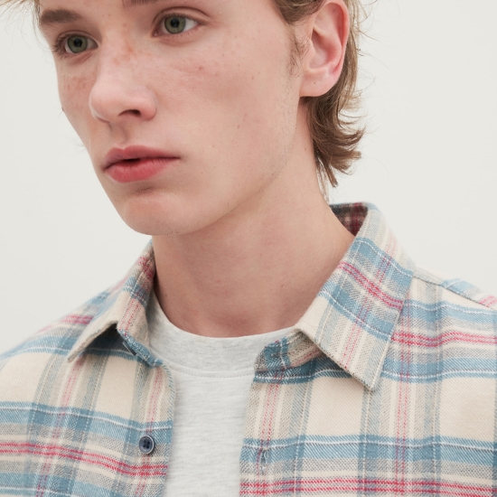 (롯데백화점)(광복점)중년 남성 코튼100 잔체크 셔츠 MUONL4W910131GL