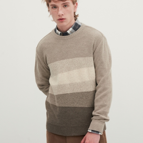 (롯데백화점)(광복점)중년 남성 부클믹스 패턴 라운드 니트 MUOBR_4W921134GL