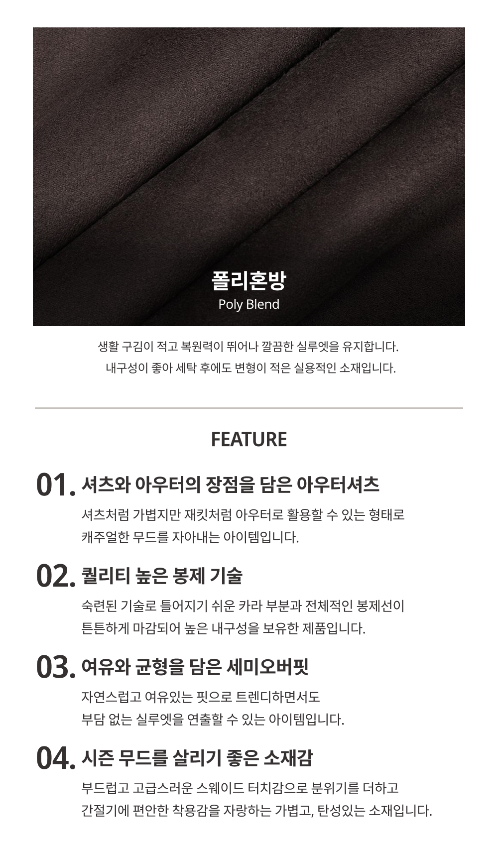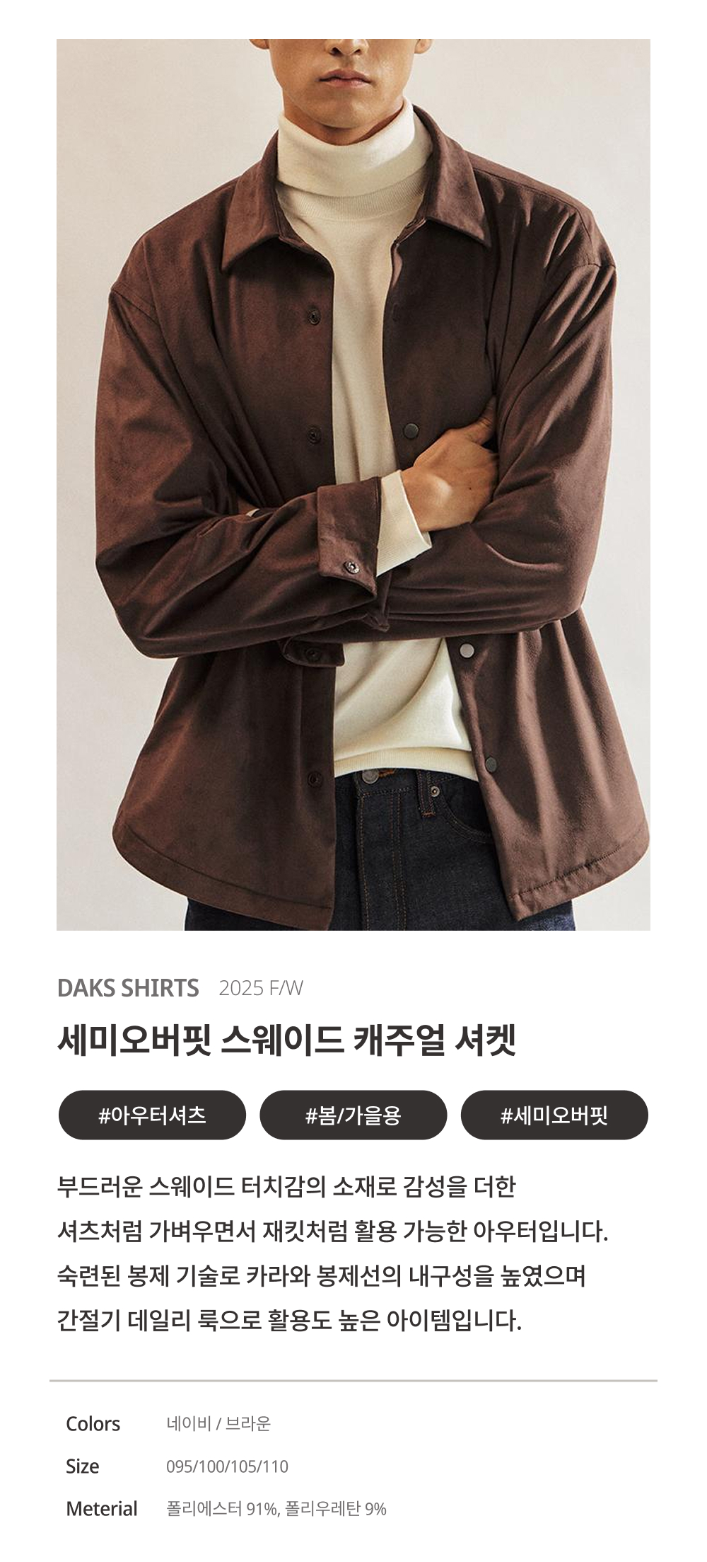 닥스닥스 폴리혼방 스웨이드 캐주얼 셔켓_DLA1SHCL190W1
