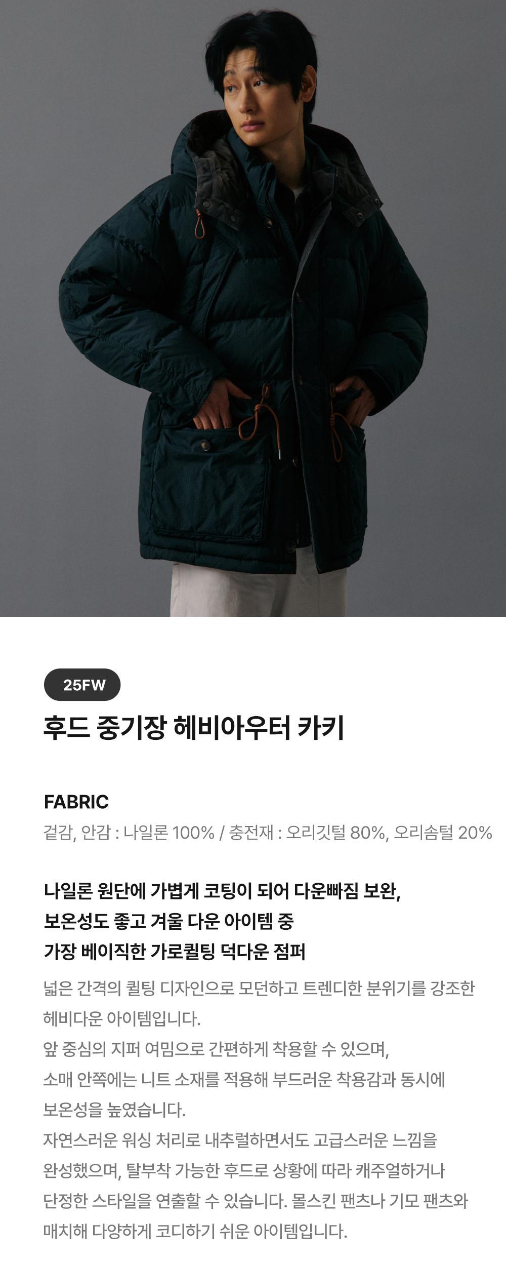 (롯데백화점)노티그 후드 중기장 헤비아우터 OLW1JPFI121-KKLN