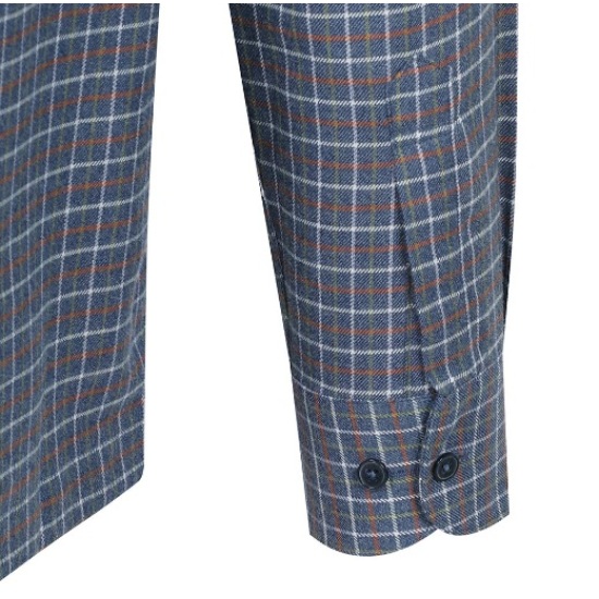고급스러운 멜란지 네이비 컬러와 그린과 오랜지 데코 컬러가 돋보이는 캐주얼 셔츠