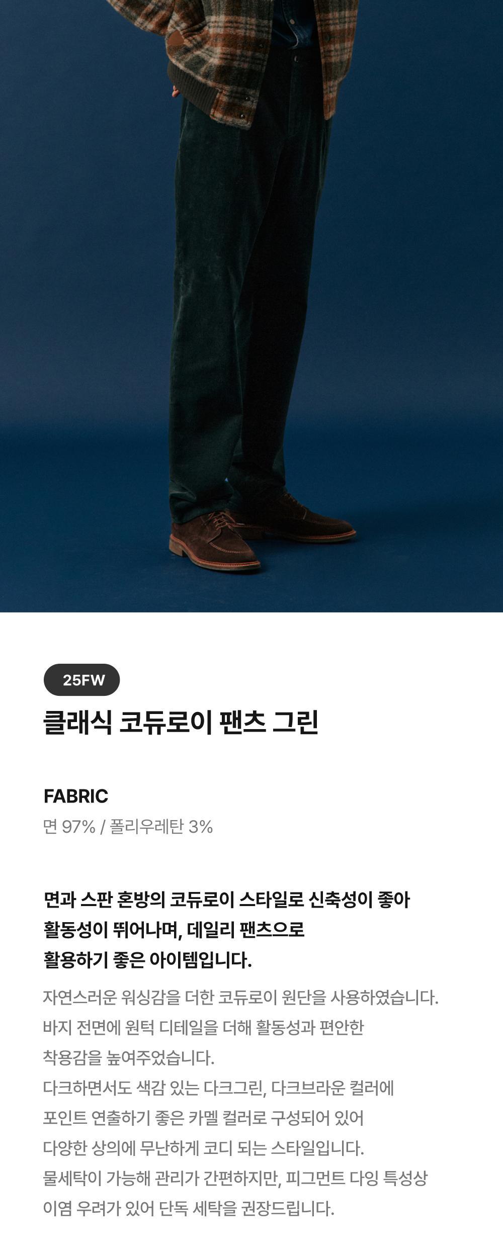 (롯데백화점)노티그 클래식 코듀로이 팬츠 OLW1PTLP103-E1LN