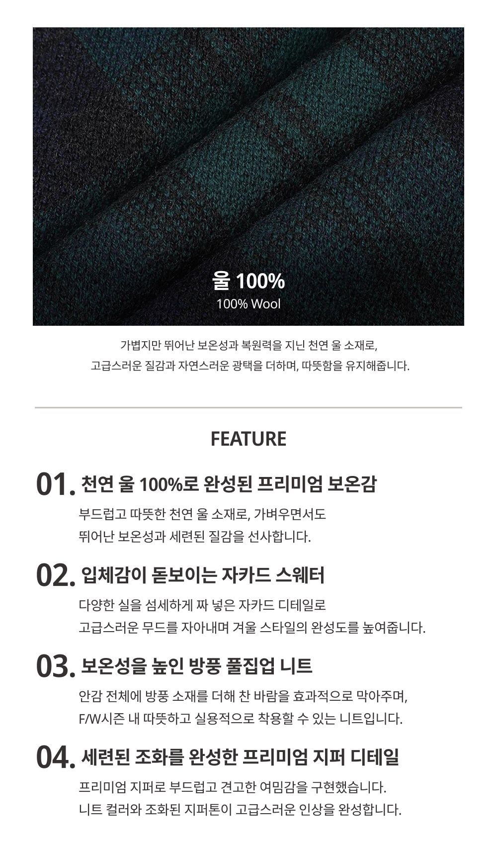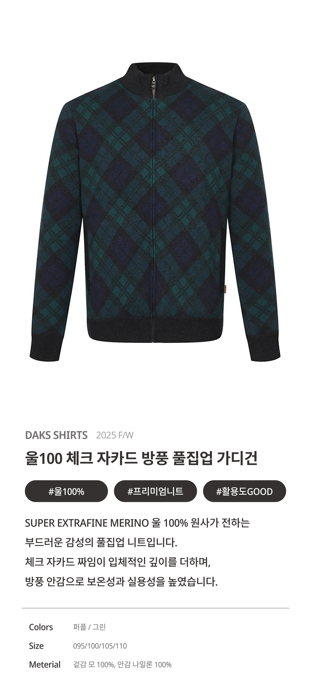 (롯데백화점)울100 체크 자카드 방풍 풀집업 양말3족증정+선물포장LW110E1