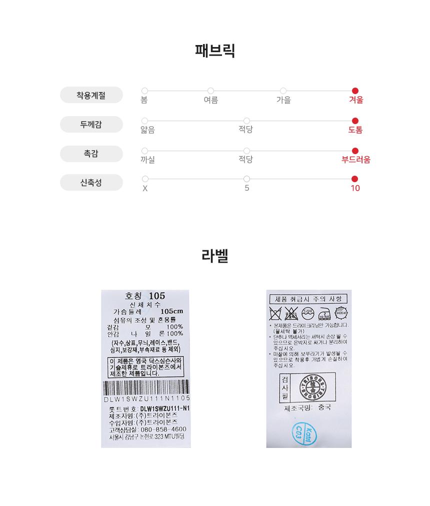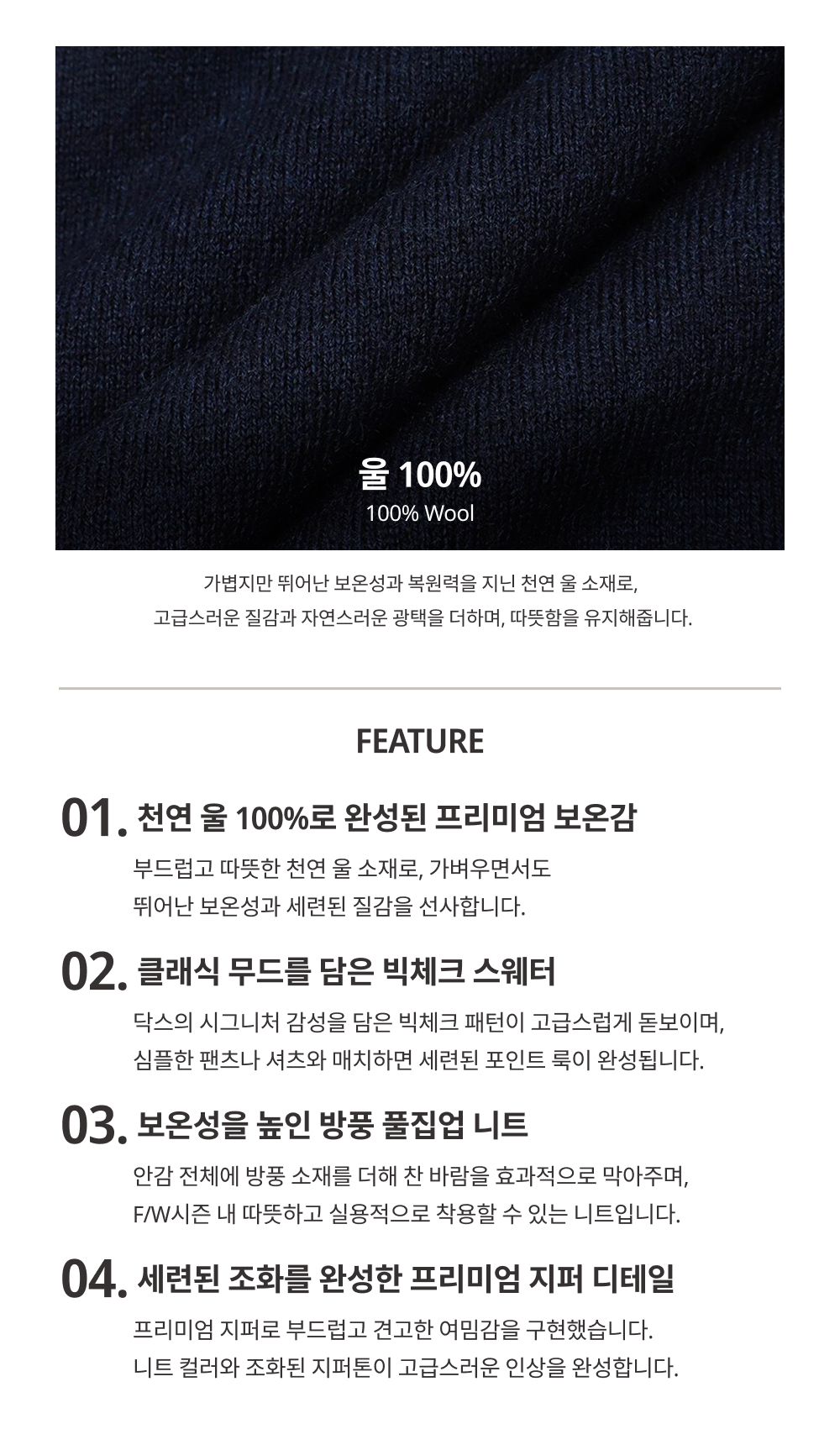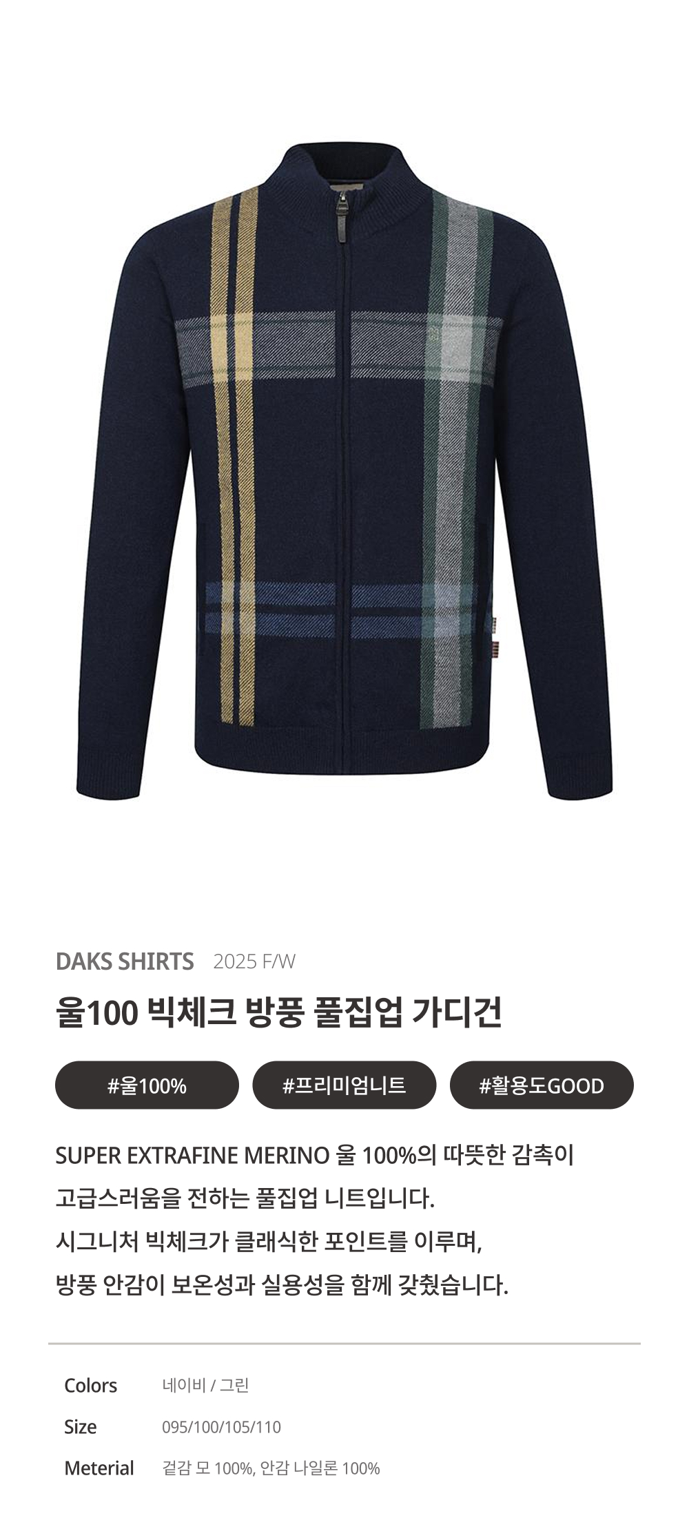 (롯데백화점)울100 빅체크 방풍 풀집업 양말3족증정+선물포장LW111N1