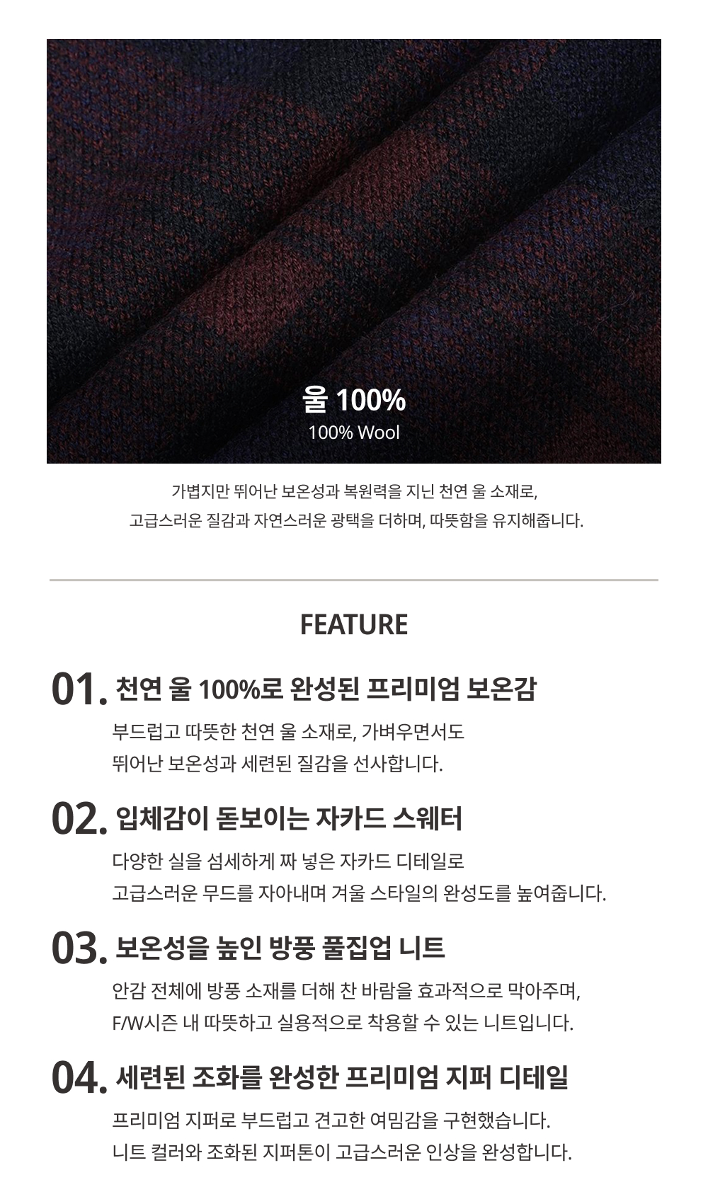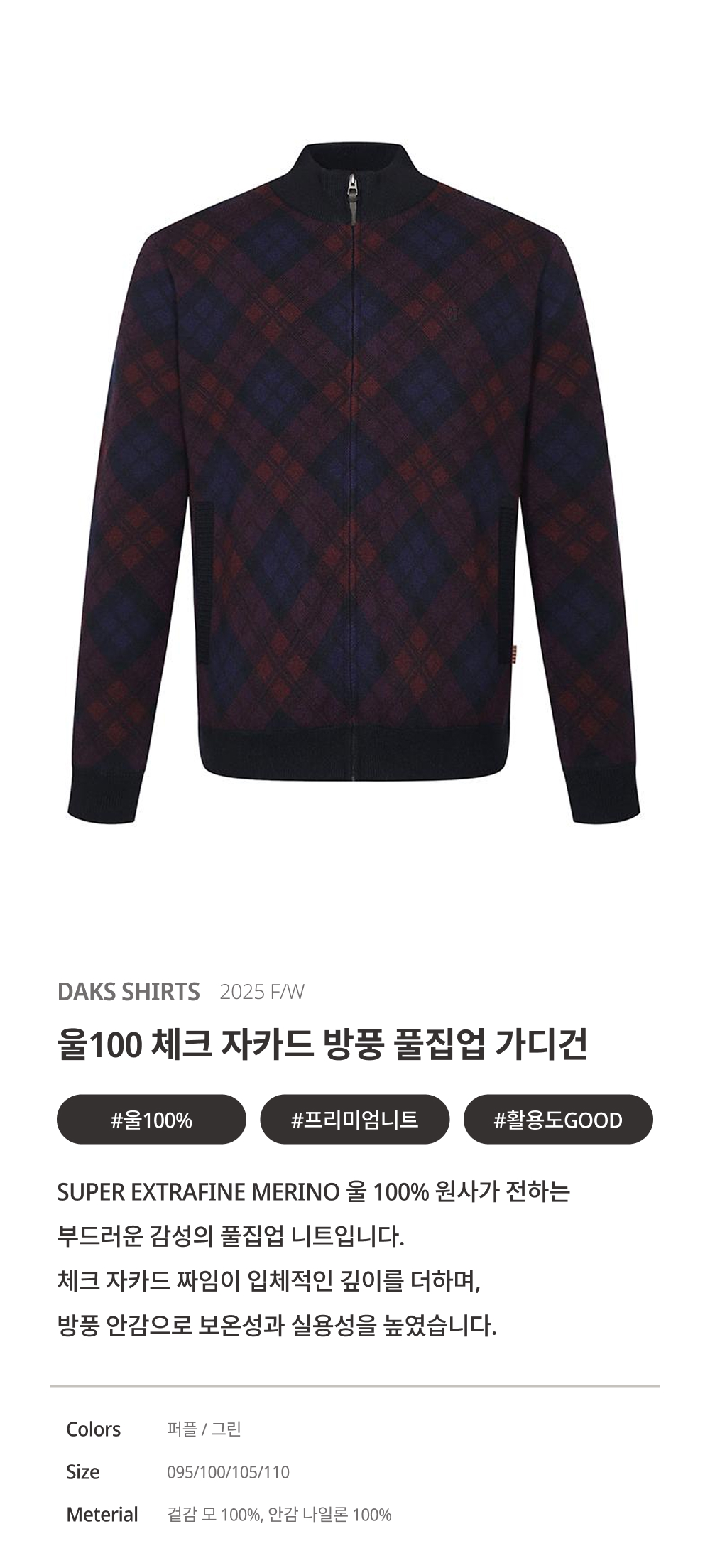 (롯데백화점)울100 체크 자카드 방풍 풀집업 양말3족증정+선물포장LW110PL1