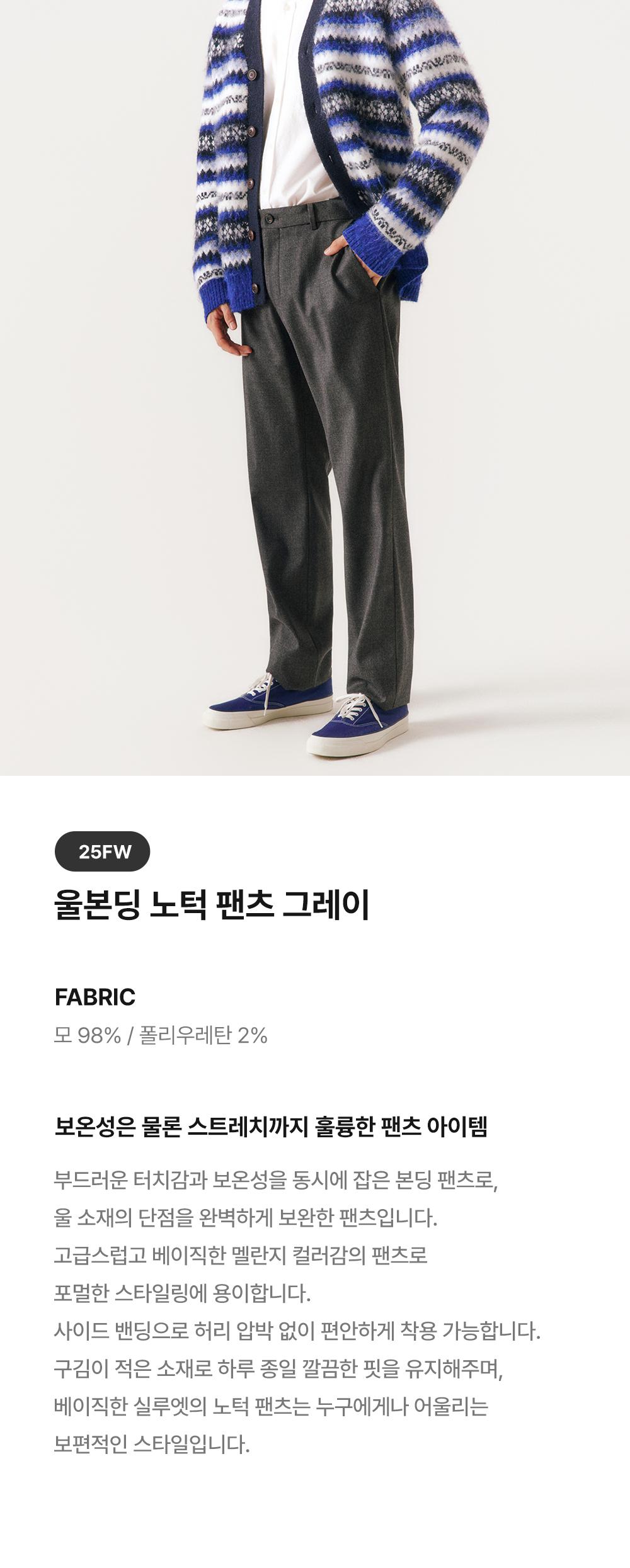 (롯데백화점)노티그 (25FW) 울본딩 노턱 팬츠 그레이 OLW1PTLP105-G1