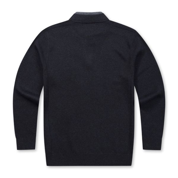 디자인 디테일 - 전체 자카드 조직을 채택하여 탄탄하고 깨끗한 외관 표현. - 칼라는 단정한 차이나 칼라 형태로 셔츠 배색에 자연스럽게 어우러지도록 디자인. - 옆구리 부분은 별도 세로골 조직을 추가하여 실루엣을 잡아주는 효과. - 밑단 및 소매단 립 처리로 자연스럽게 형태감을 잡아줄 수 있도록 디자인.