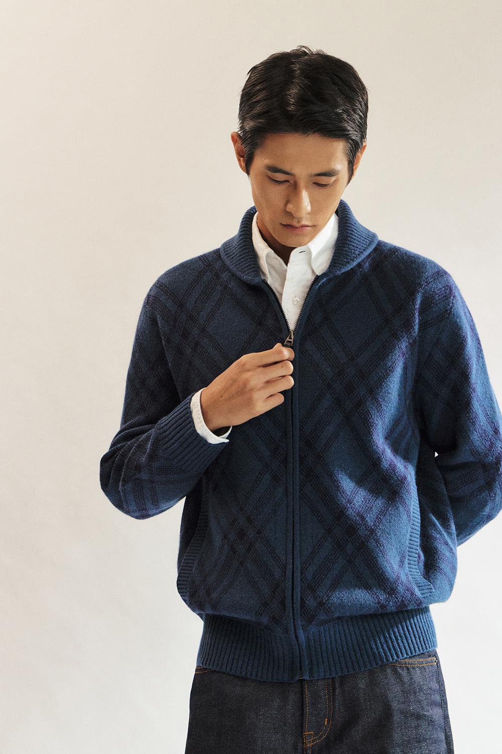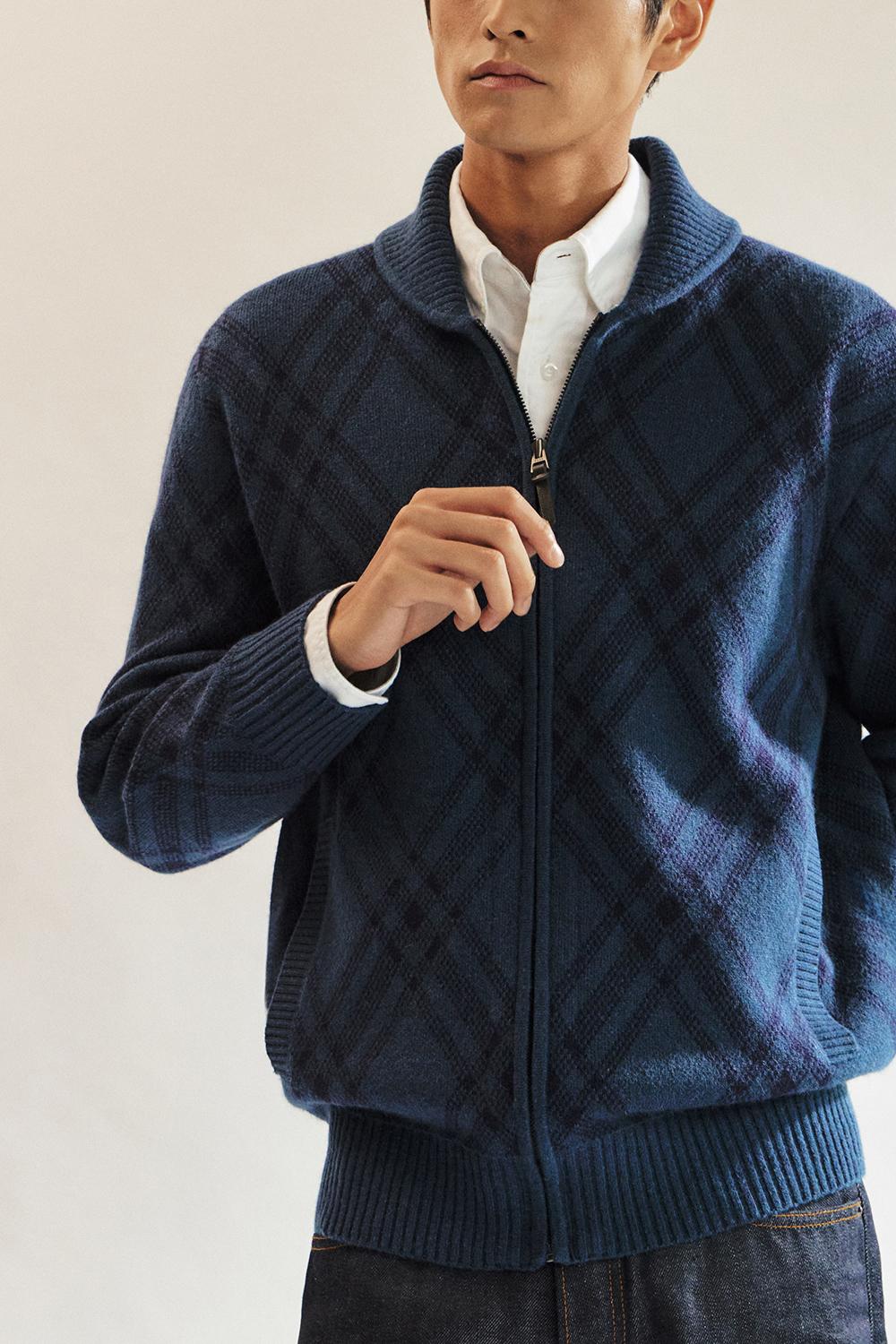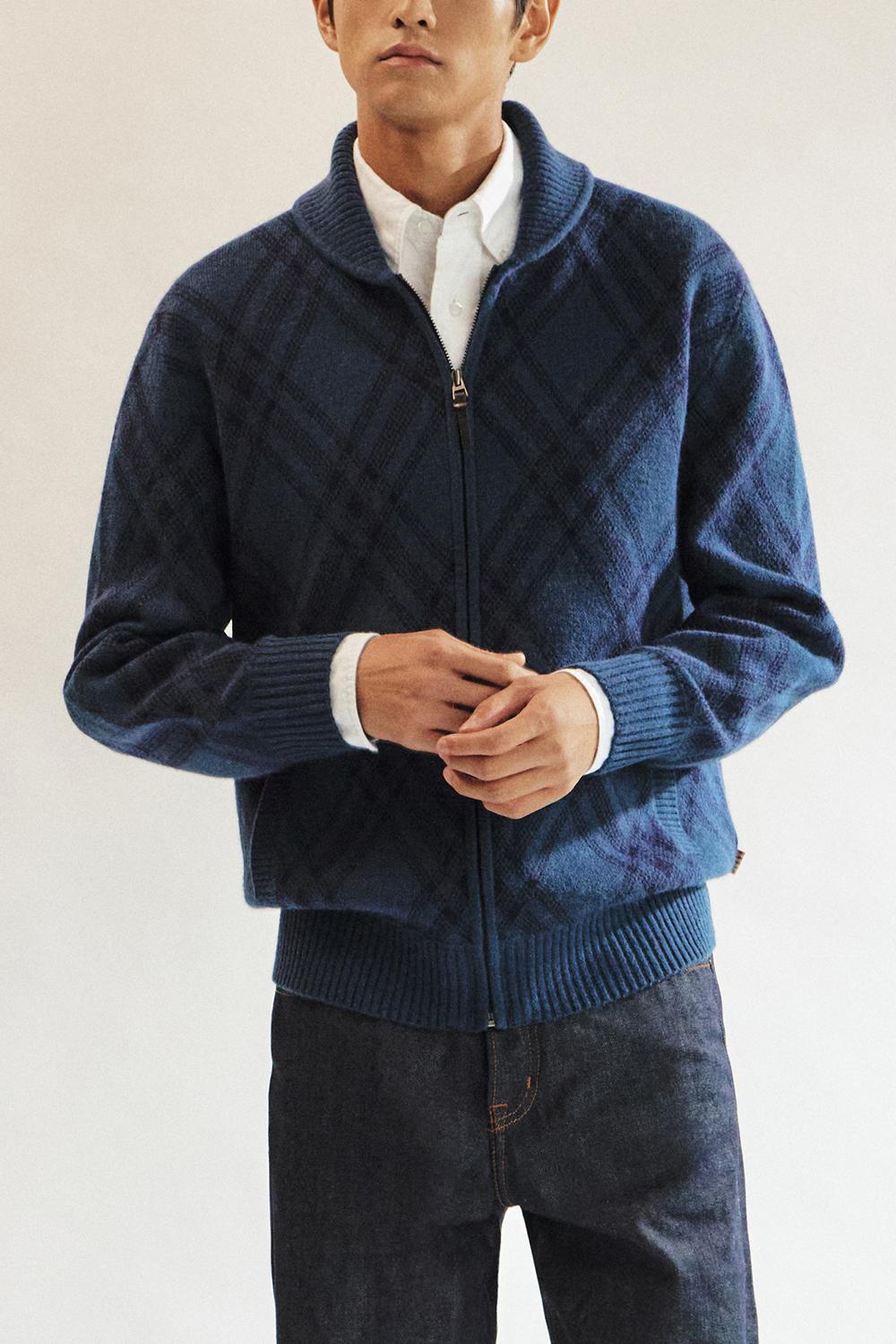 닥스울혼방 숄에리 체크 풀집업__DLW1SWZU113N1