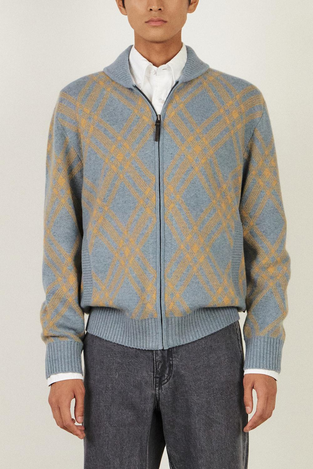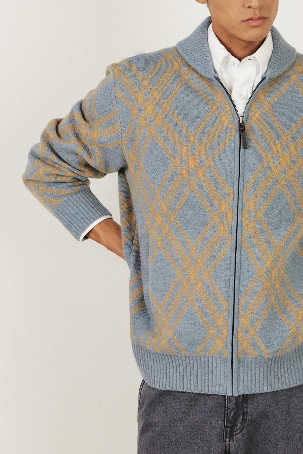 닥스울혼방 숄에리 체크 풀집업__DLW1SWZU113B1