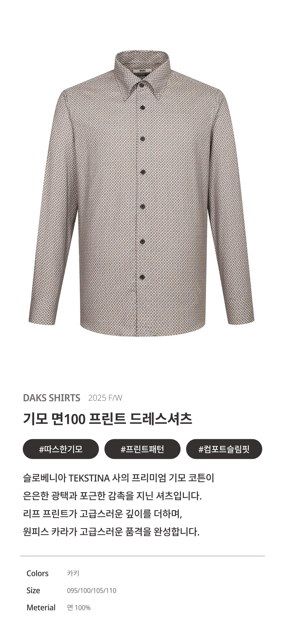 닥스기모 면100 프린트 드레스셔츠 컴포트슬림핏___DLW1SHDL295KK