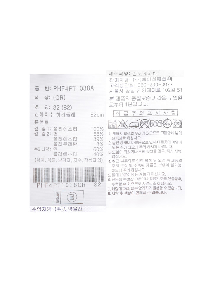 밑단둘레 | 43 | 44.5 | 46 | 47.5 |