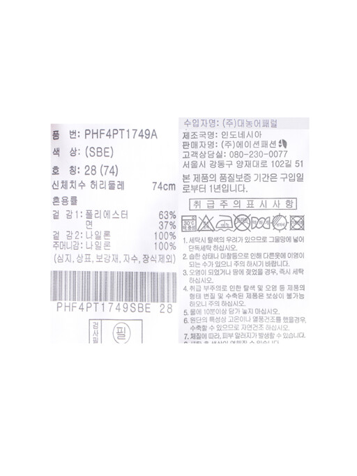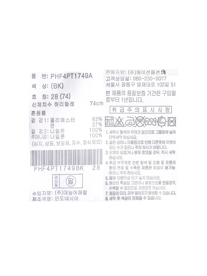 밑단둘레 | 47 | 48.5 | 50 | 51.5 |