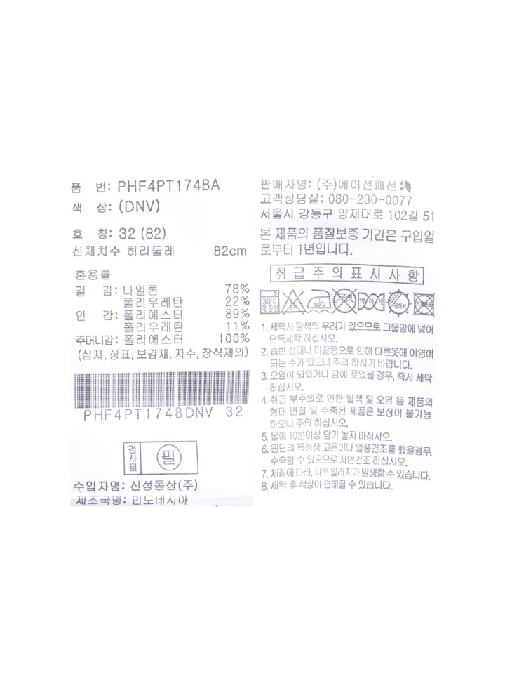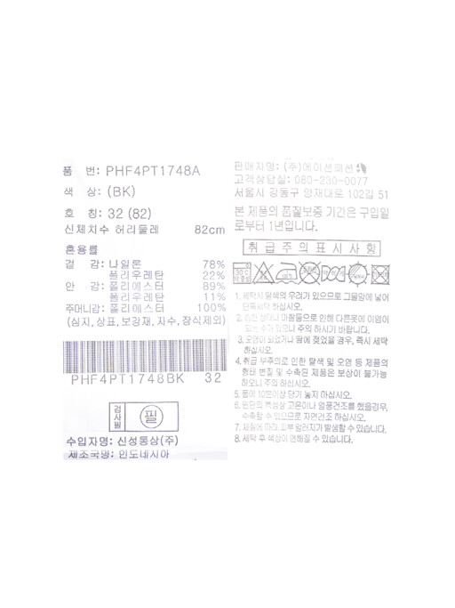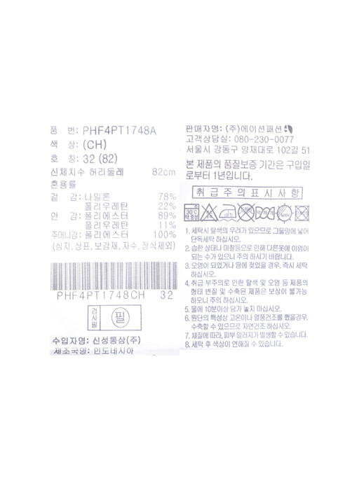 밑단둘레 | 35 | 36.5 | 38 | 39.5 | 41 |