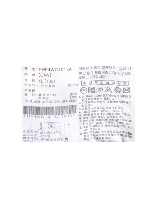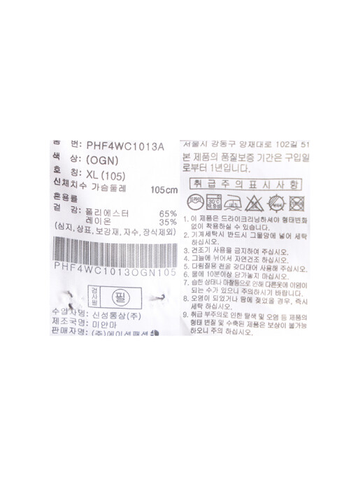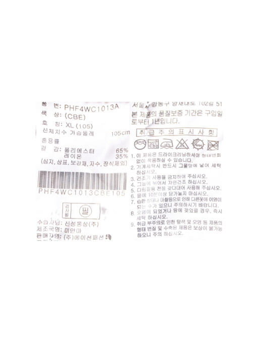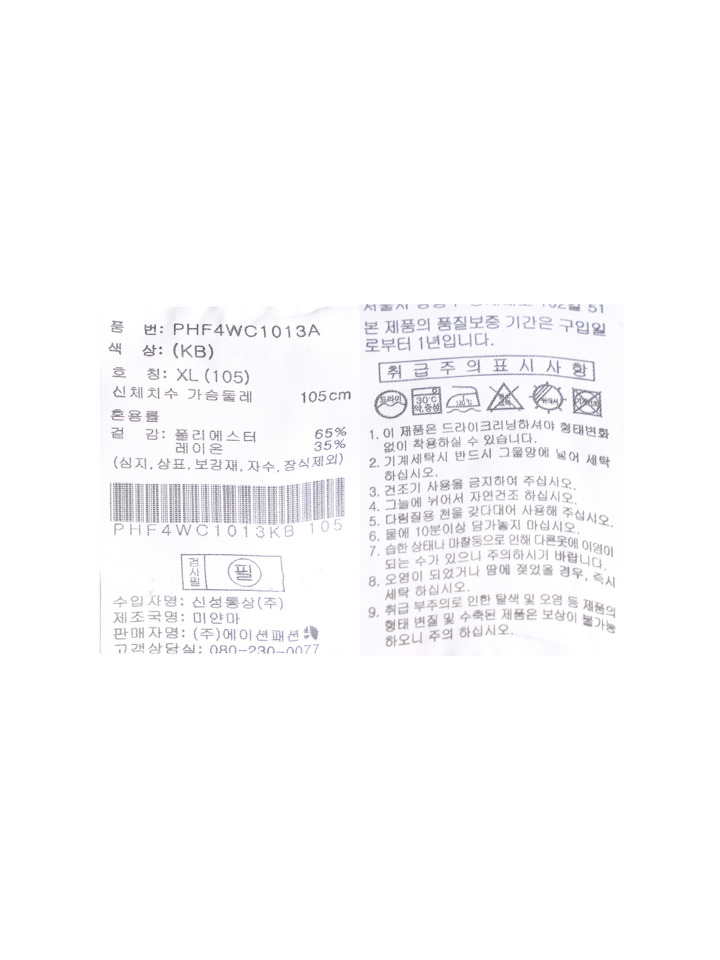 사이즈 | M(95) | L(100) | XL(105) | XXL(110) |
