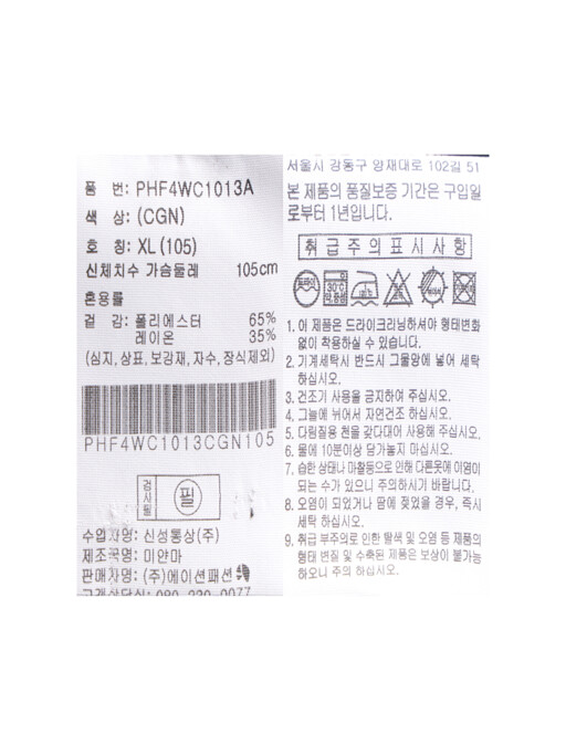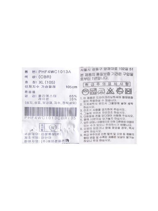 가슴둘레 | 107 | 112 | 117 | 122 |