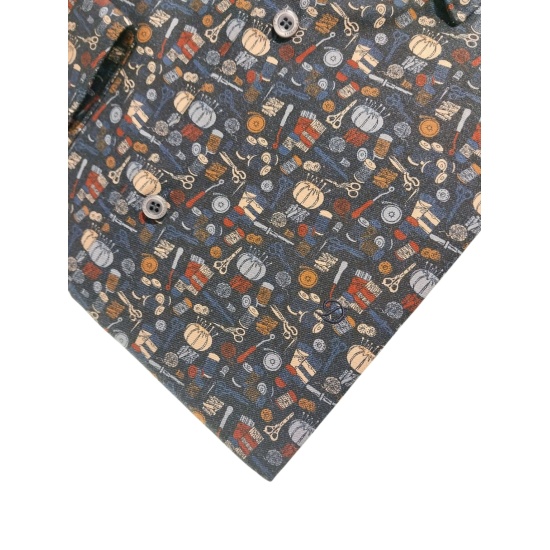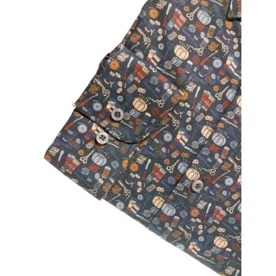 아트마켓 모티브 프린트가 위트있게 디자인되어 고급스럽고 개성있는 코디에 활용