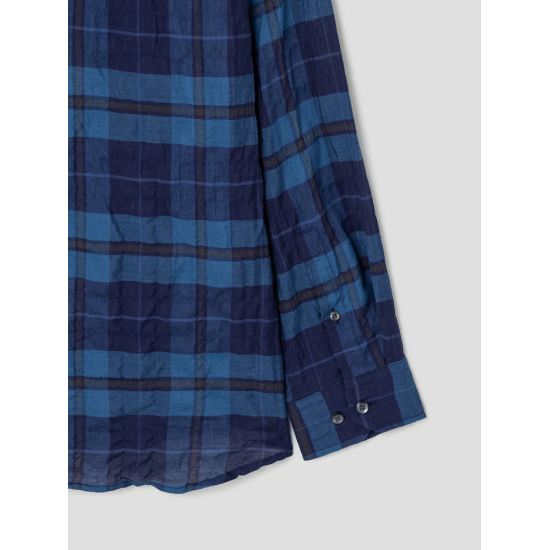 면 레이온이 혼방된 수입 원단으로 제작된 긴소매 체크 셔츠입니다.