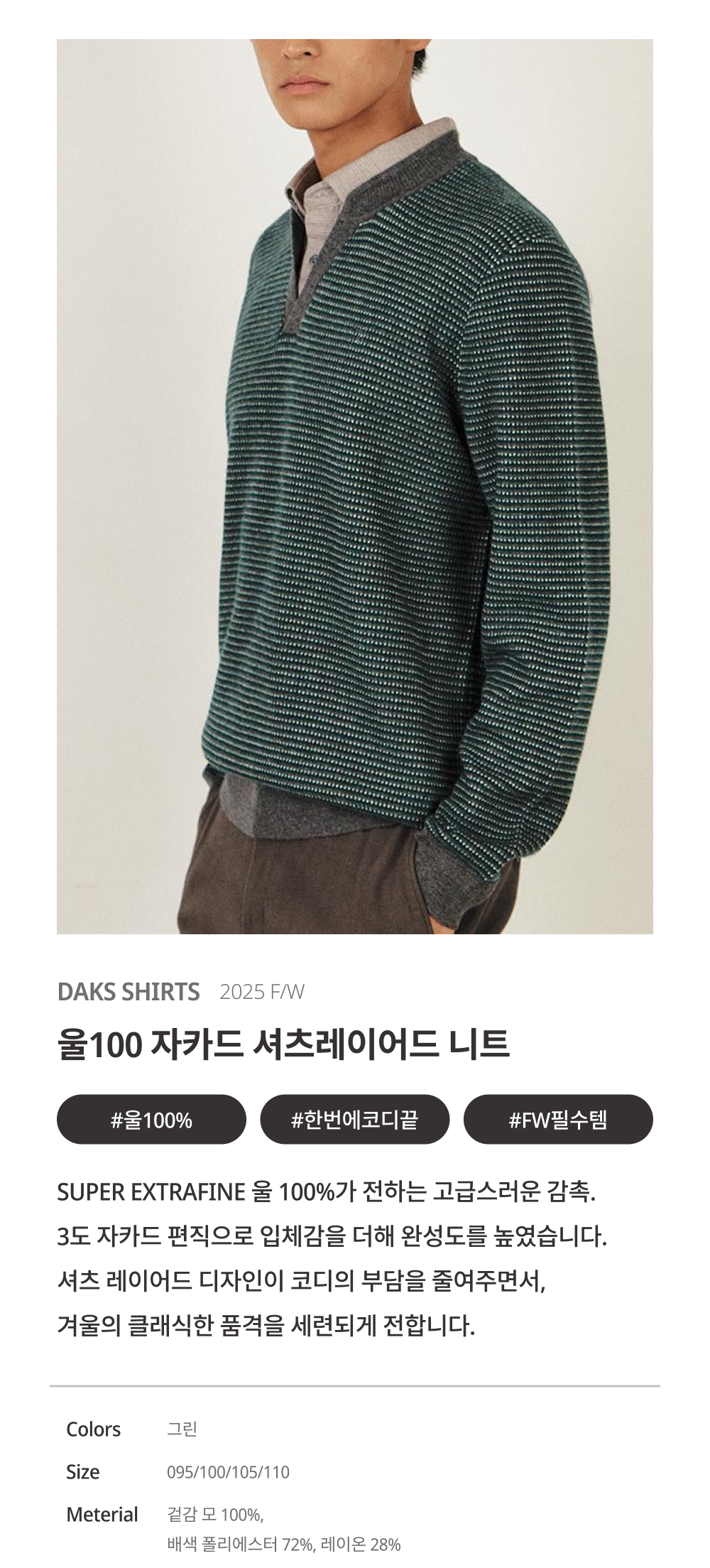 (롯데백화점)(25FW) 울100 자카드 셔츠레이어드 스웨터 DLW1SWRL112-E1