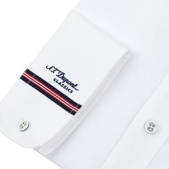 스트레치 소재를 사용한 기본 컴포터블 라인 셔츠에 커프스와 시다마이에 삼색 TAPE로 패치 및 커프스 풀로고 자수로 포인트를 준 제품