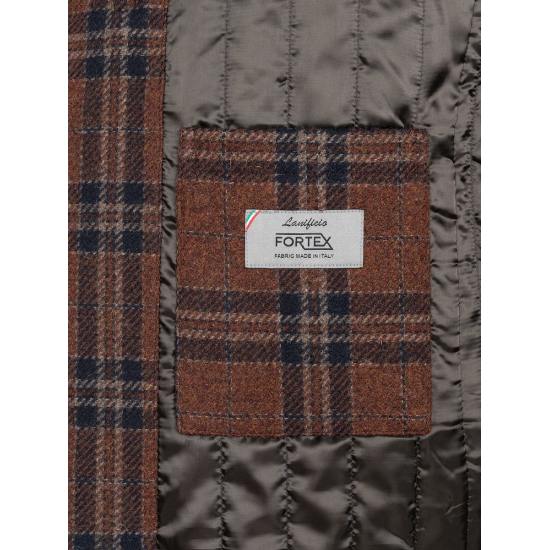 이탈리아 포르텍스(FORTEX) 사의 울 혼방 소재로 제작된 타탄 체크 패턴의 숏 코트형 아우터입니다.