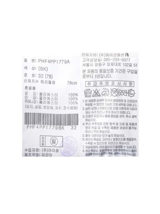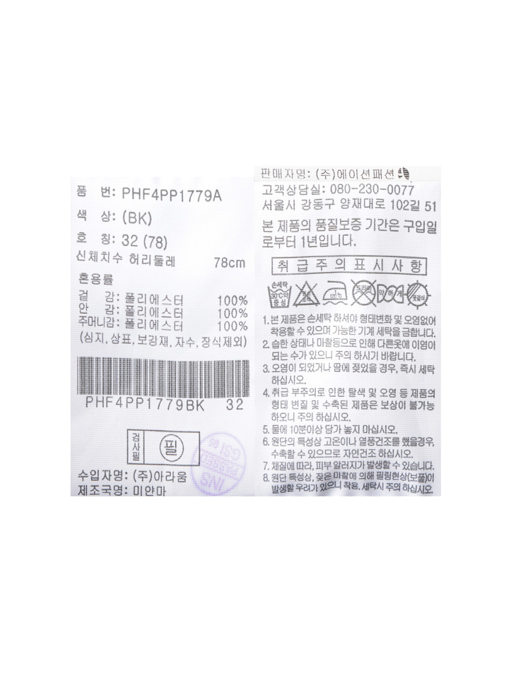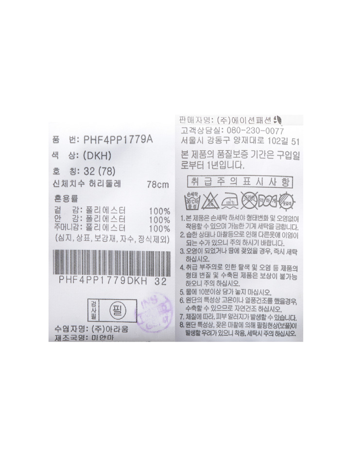 앞 밑위길이 | 32 | 33 | 34 | 35 | 36 |