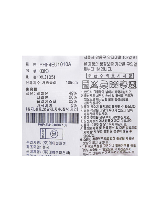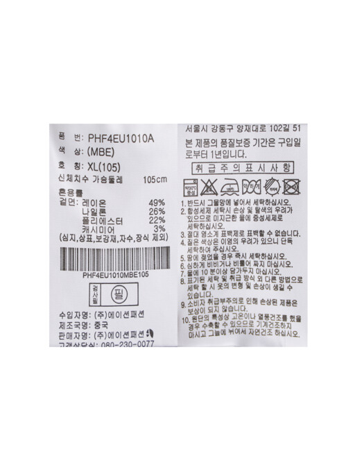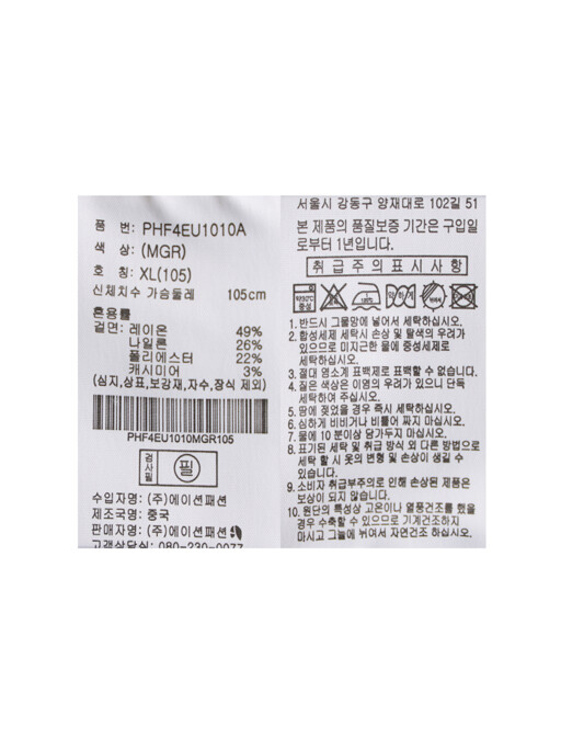 가슴둘레 | 102 | 107 | 112 | 117 |