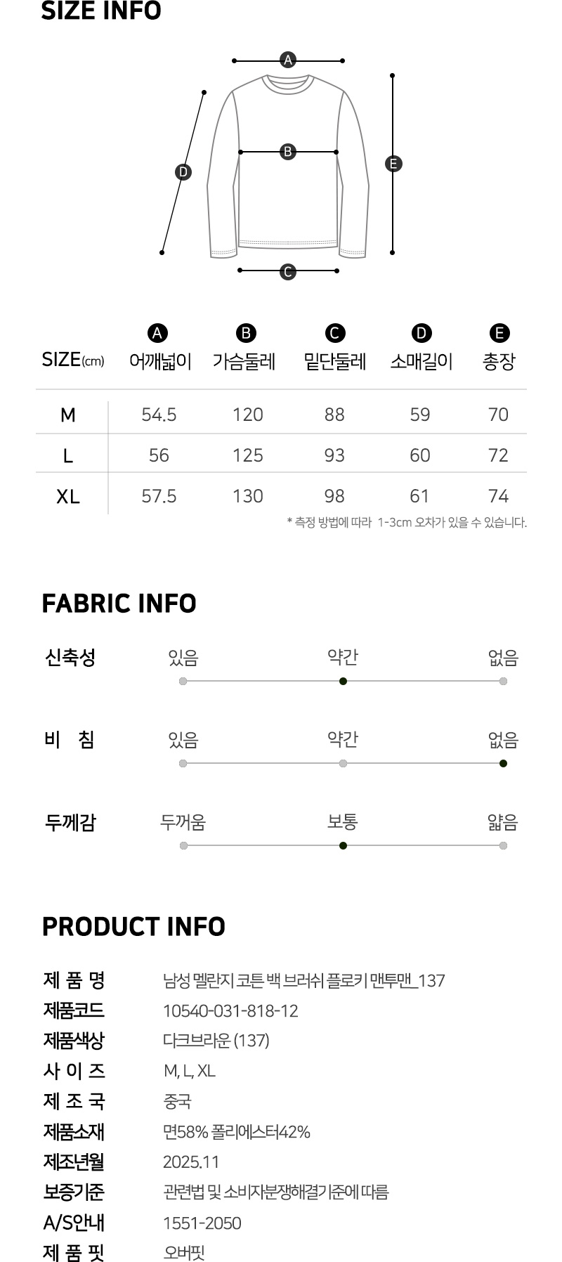 행텐행텐남성 멜란지 코튼 백 브러쉬 플로키 맨투맨_137(10540-031-818-