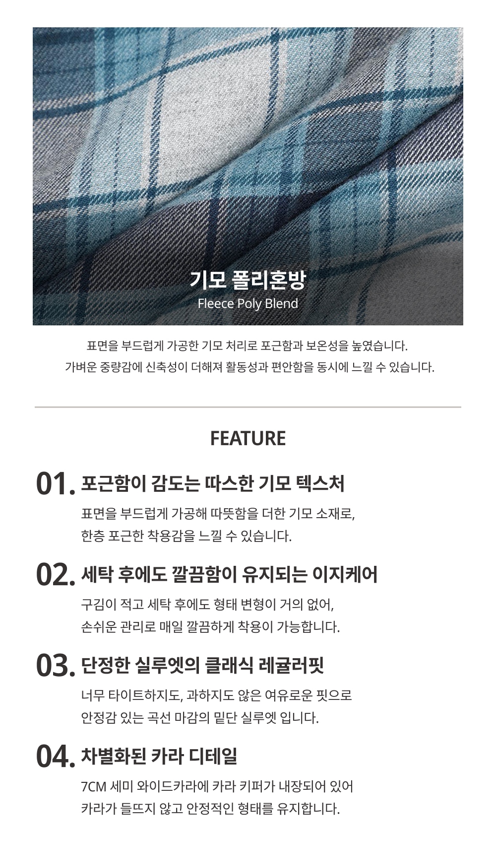 (롯데백화점)긴팔 레귤러핏 미디움체크 기모셔츠 DLW1SHCL107-G1LN