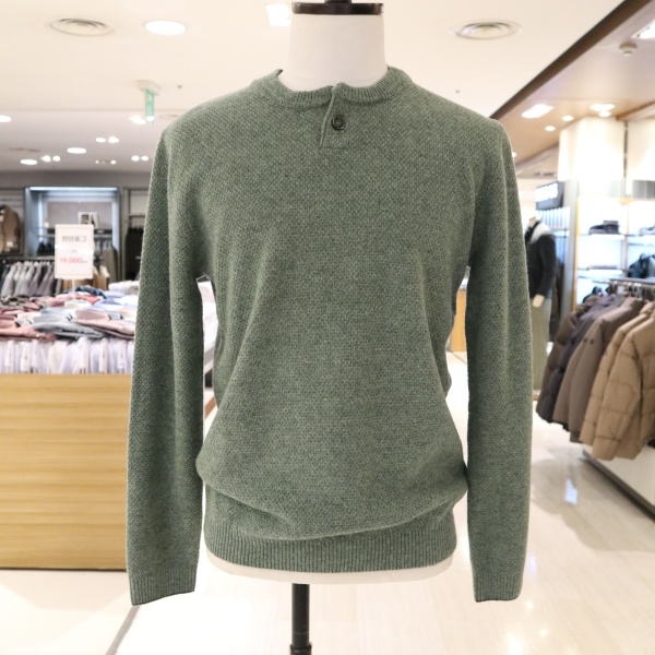 * 모 100%의 라운드 니트티셔츠로 단추가 포인트로 단조롭지 않게