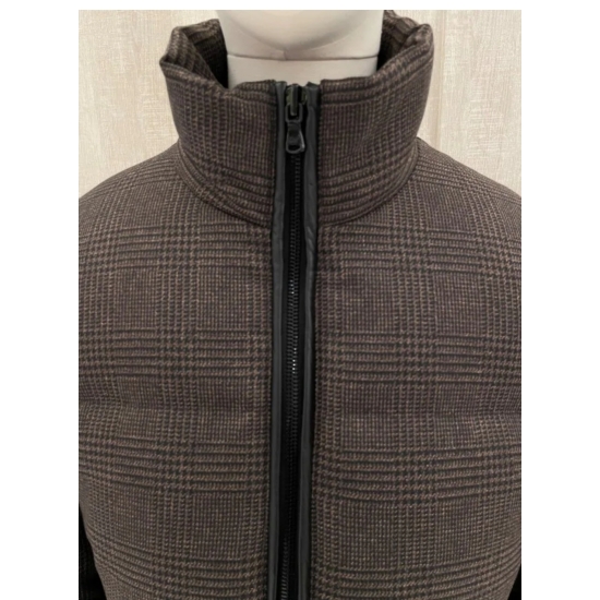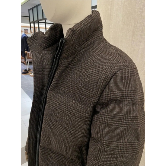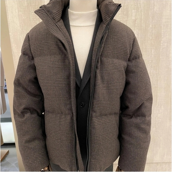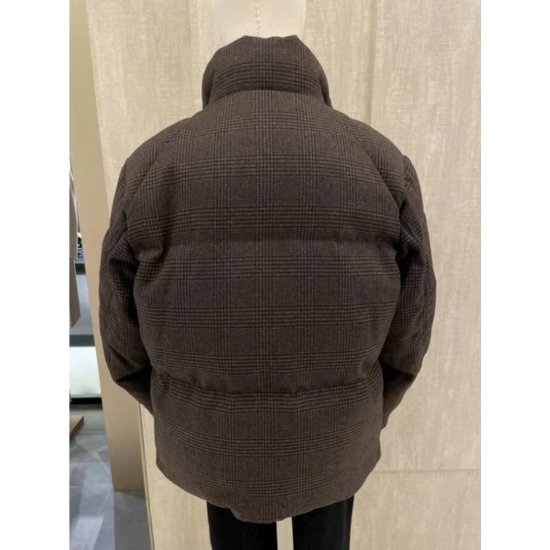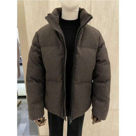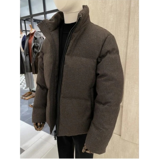 지이크 프리미엄 구스다운 브라운체크 숏패딩