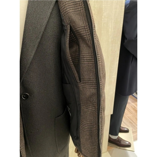 숏한 길이감에 은은하고 고급스러운 브라운 체크패턴이고