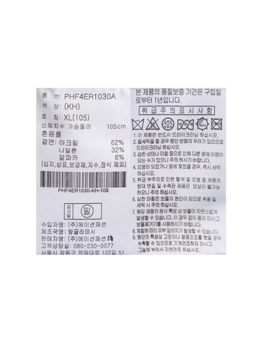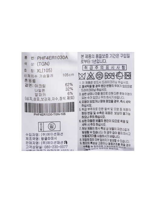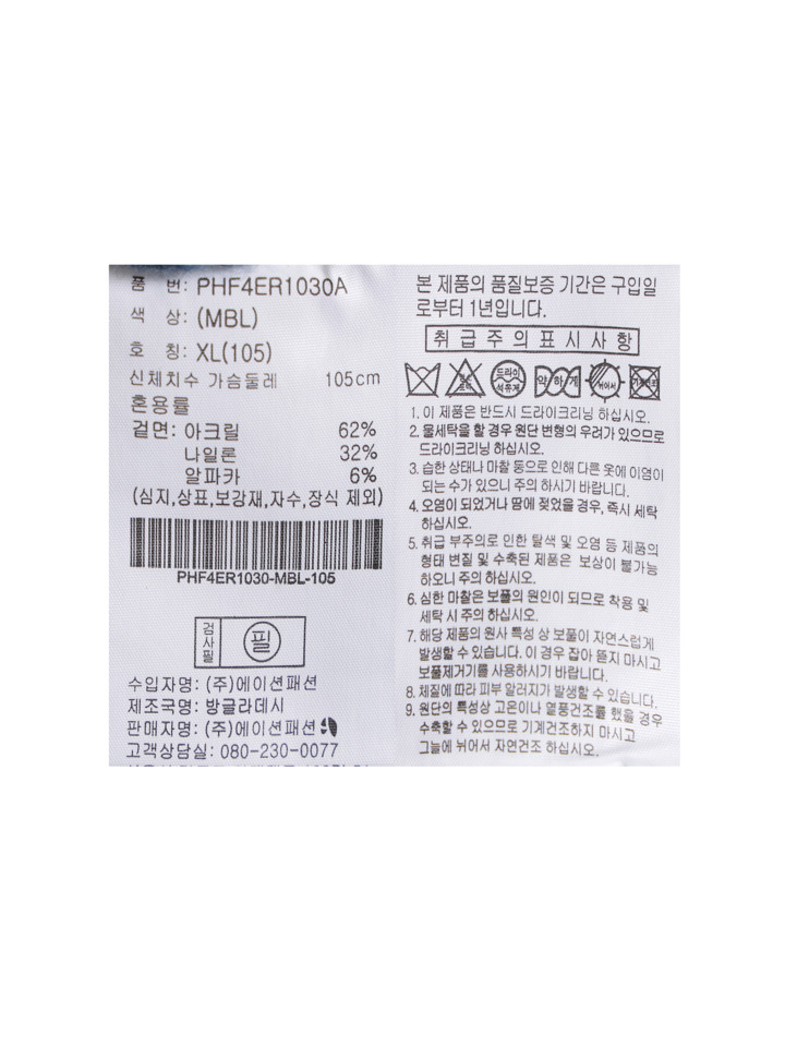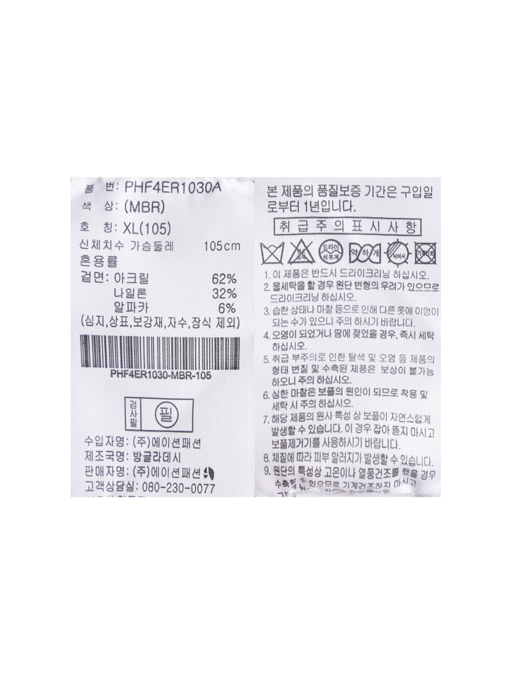 가슴둘레 | 105 | 110 | 116 | 121 |