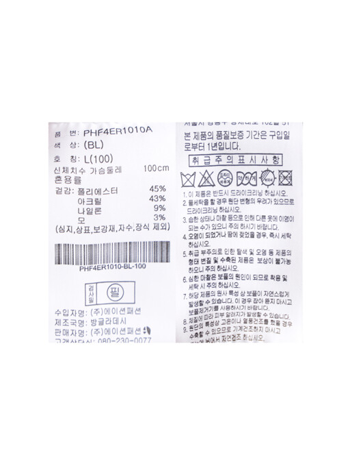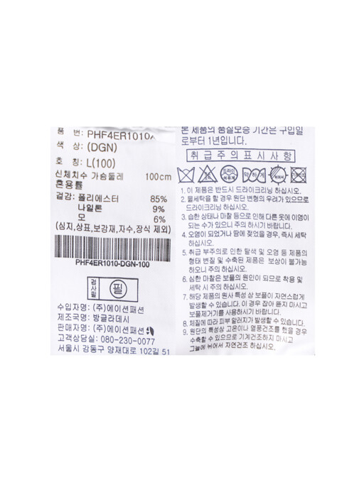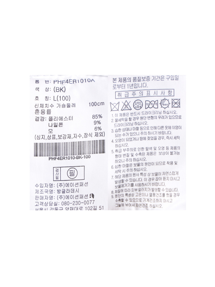 사이즈 | M(95) | L(100) | XL(105) | XXL(110) |